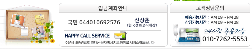 주소 : 서울 강북구 도봉로98길 36 한국생화꽃직매장 | 대표자 : 신상춘 사업자등록번호 : 217-90-27739